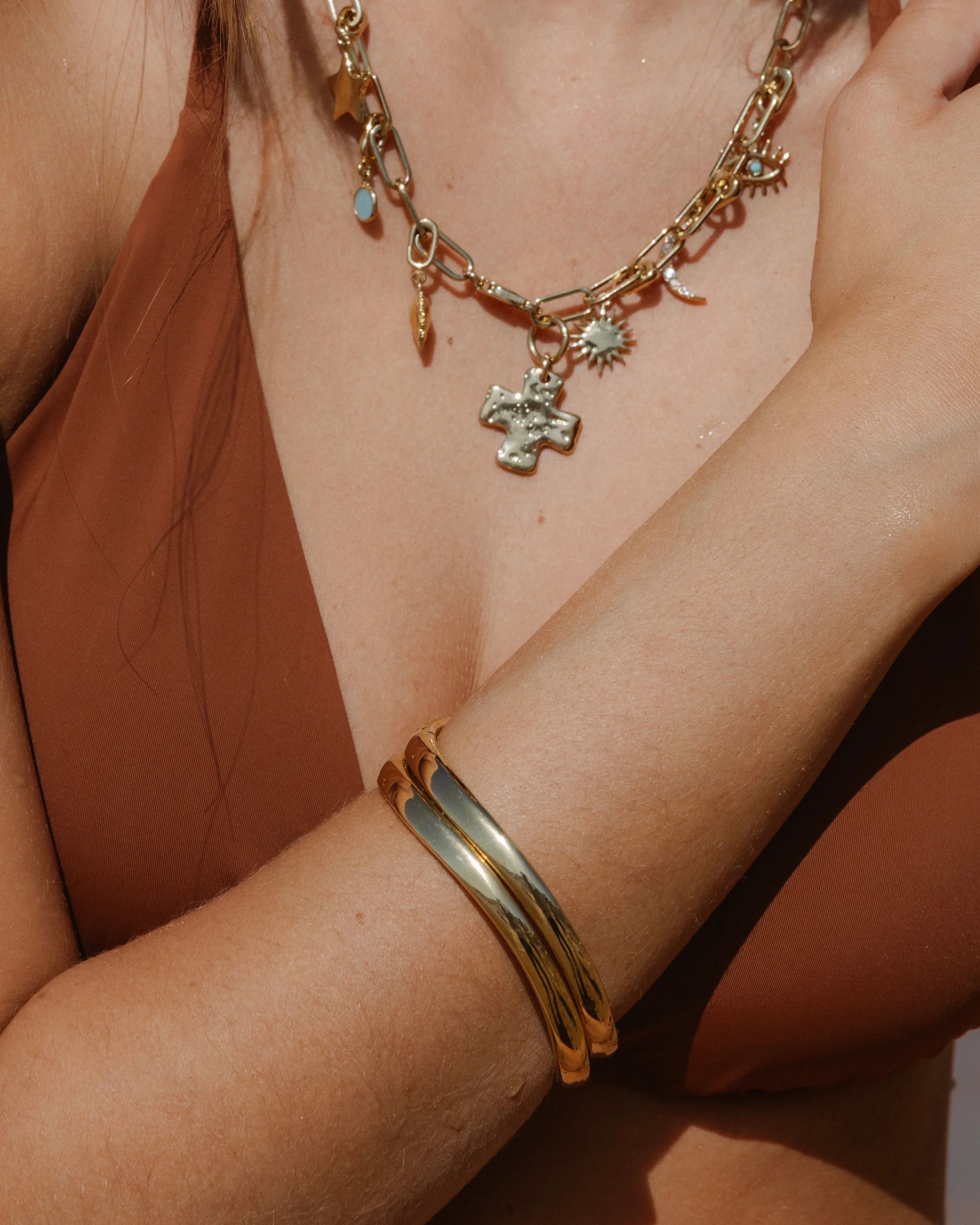 Material: Waterproof, tarnish proof, and hypoallergenic, crafted from brass with a durable 10k gold PVD coating